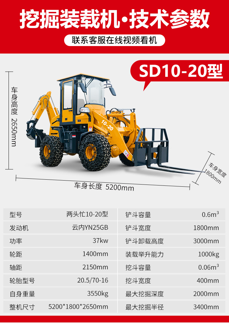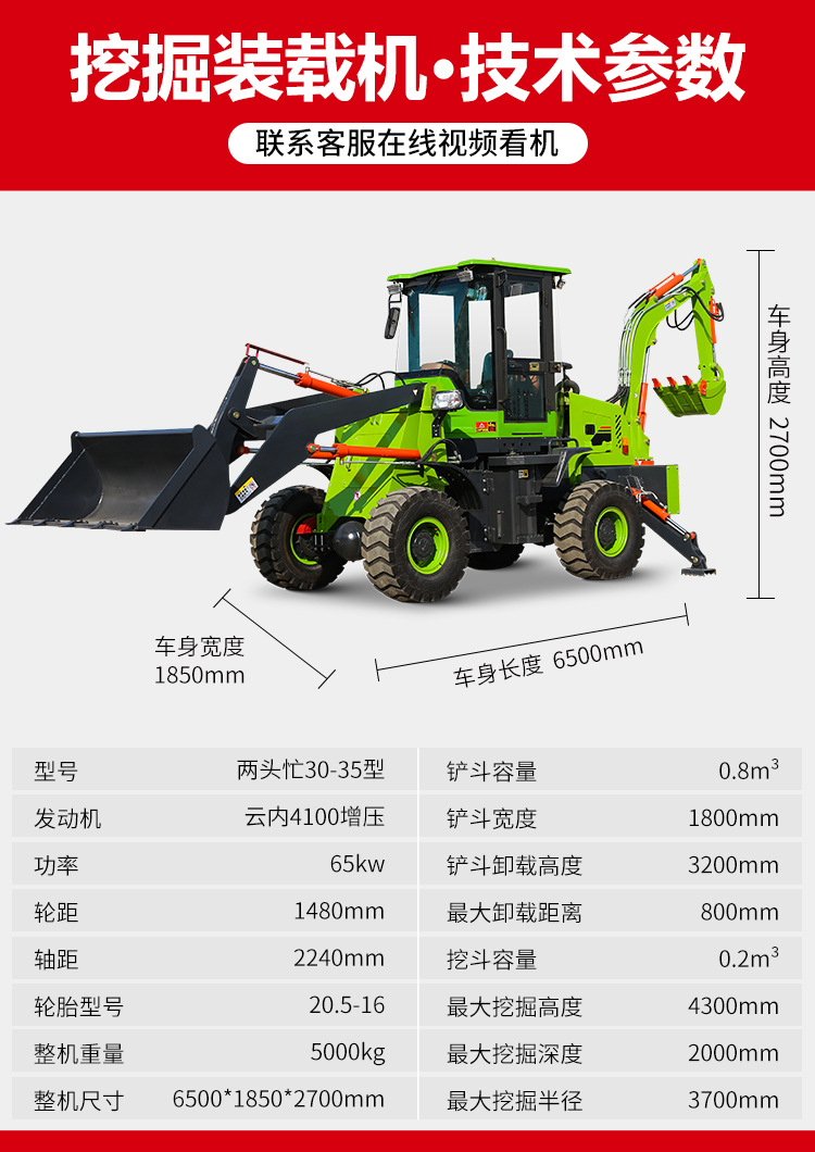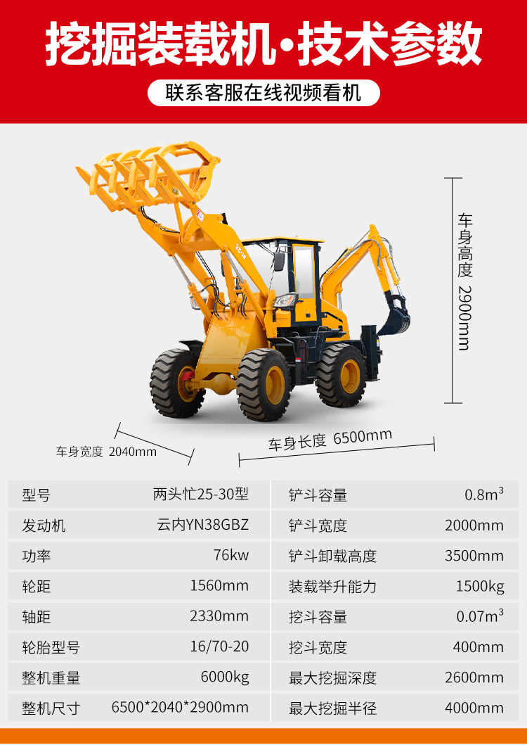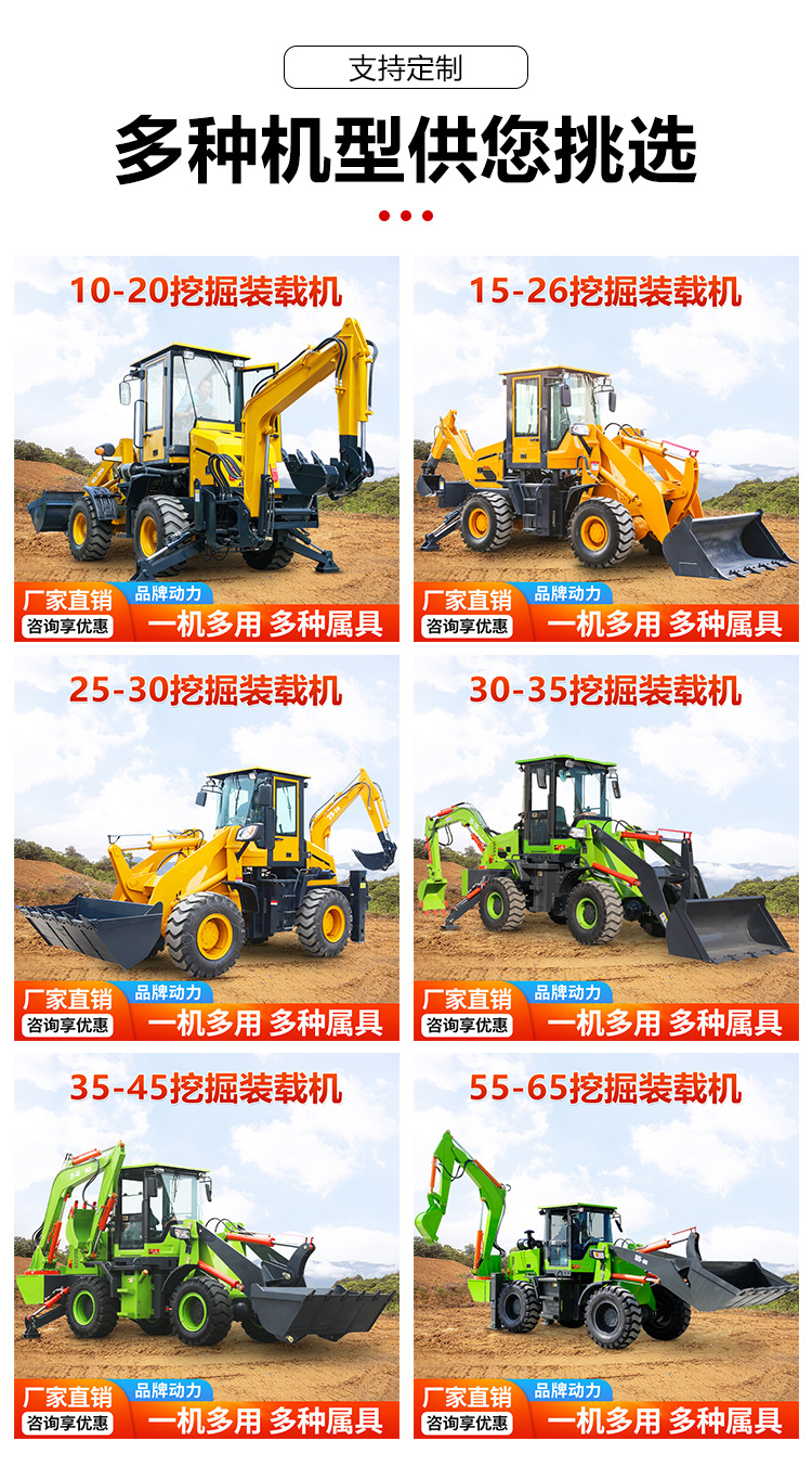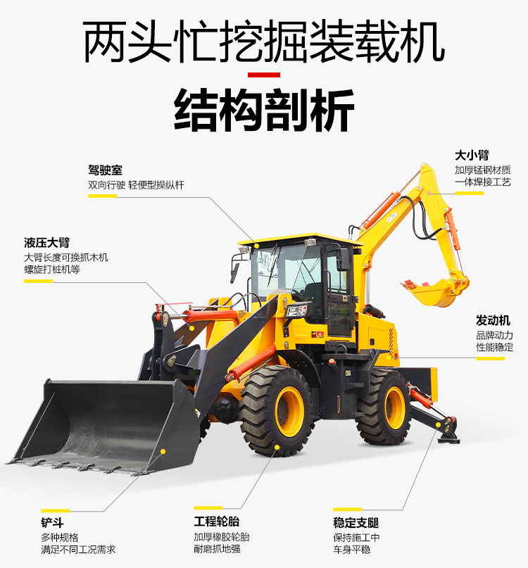 两头忙铲挖掘用一体机装载机四驱轮式挖机多功能液压轮式装载机